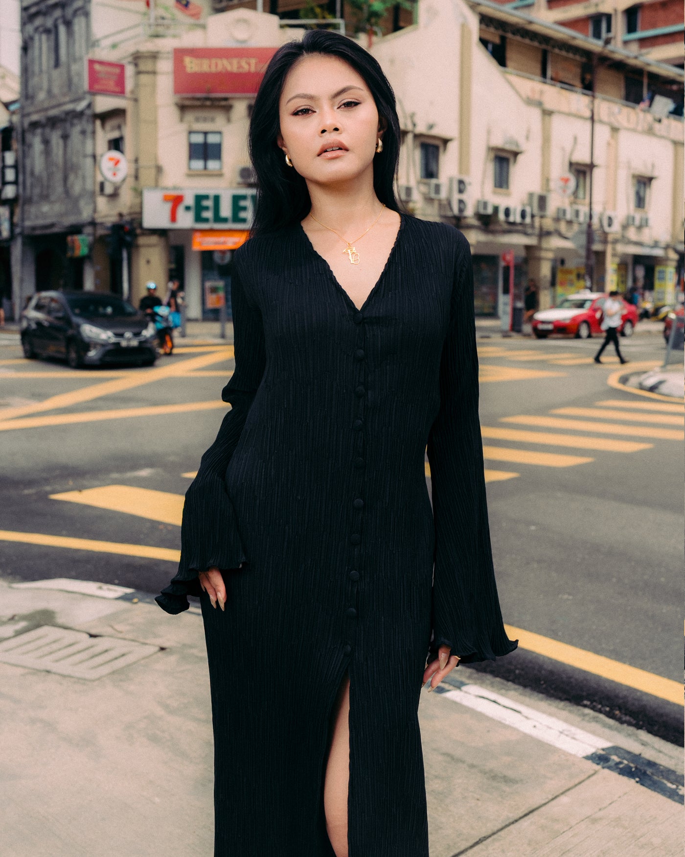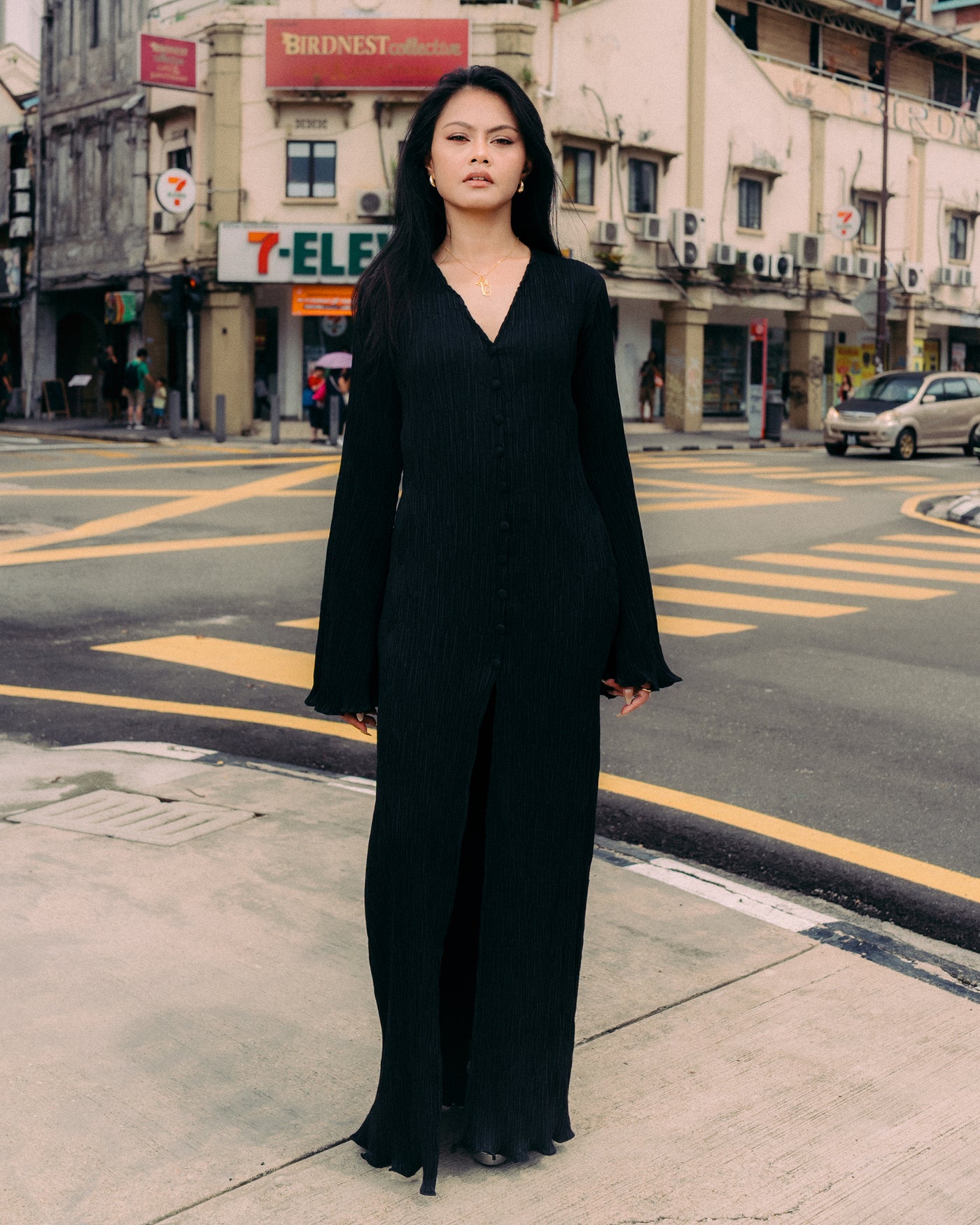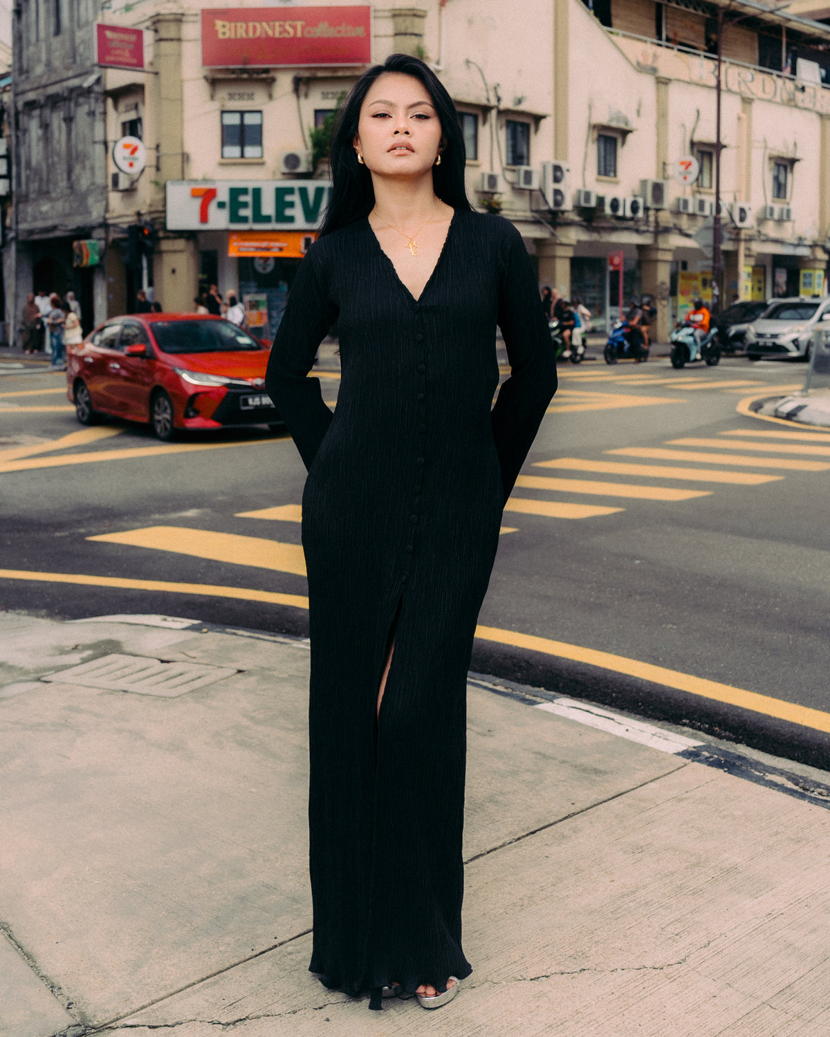 - Long pleated dress