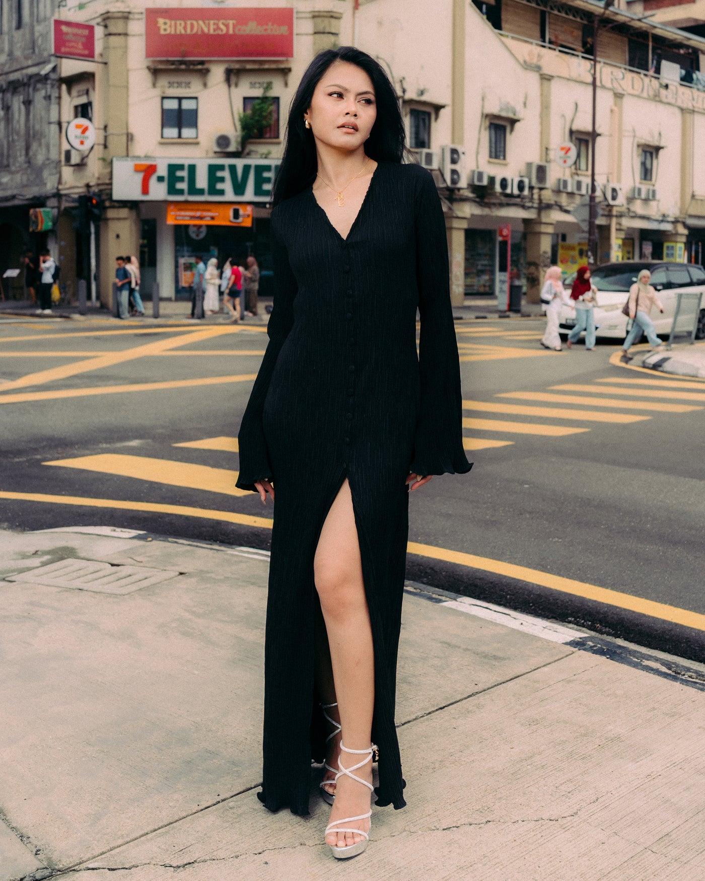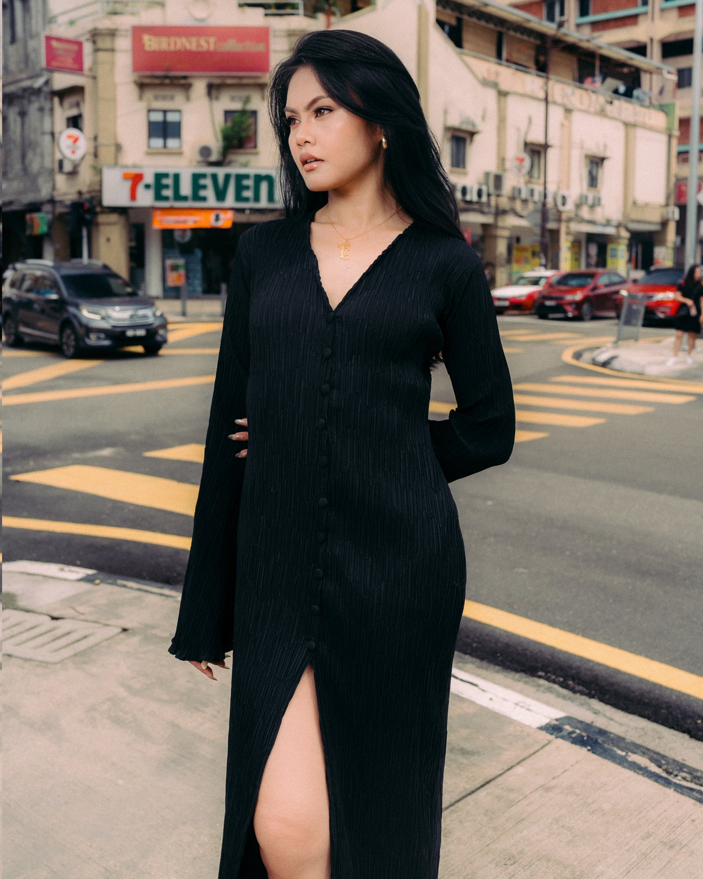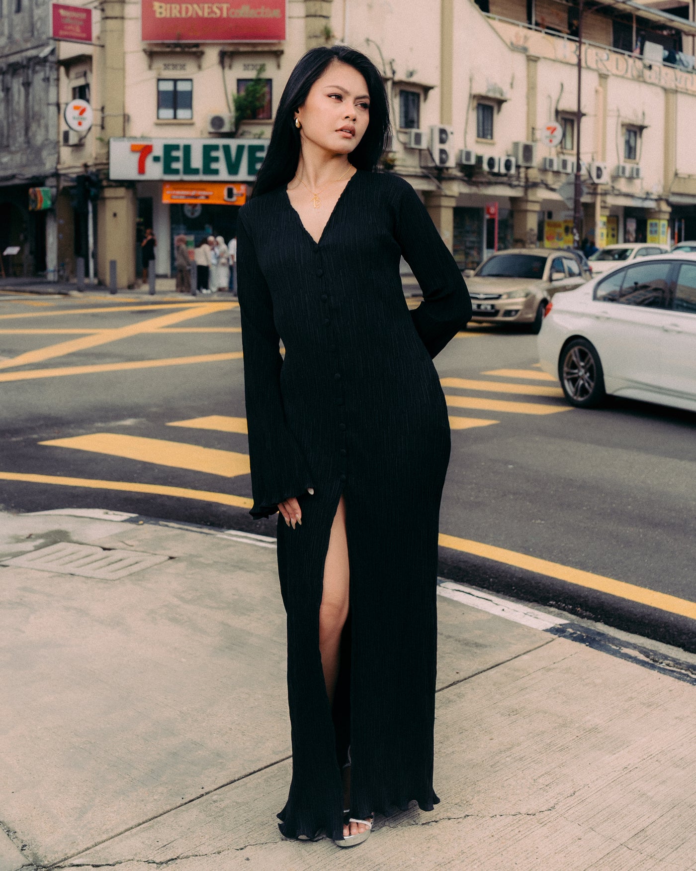 - Long pleated dress